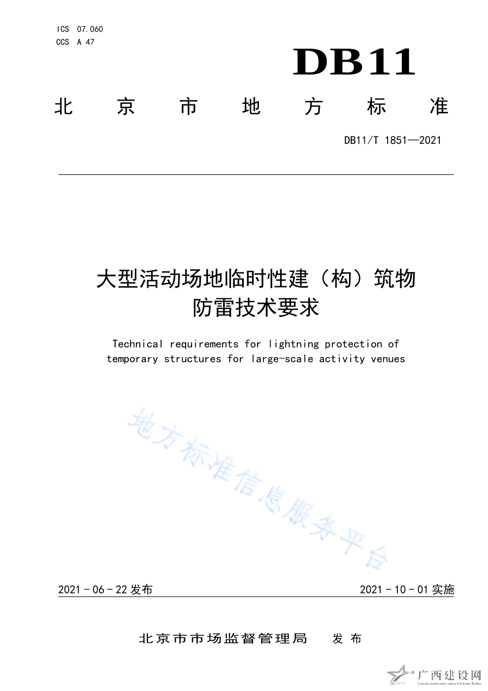 DB11 T+1851-2021大型活動(dòng)場地臨時(shí)性建(構(gòu))筑物防雷技術(shù)要求