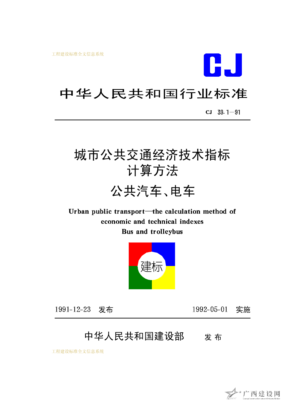 城市公共交通經濟技術指標計算方法公共汽車、電車 CJ39.1-91
