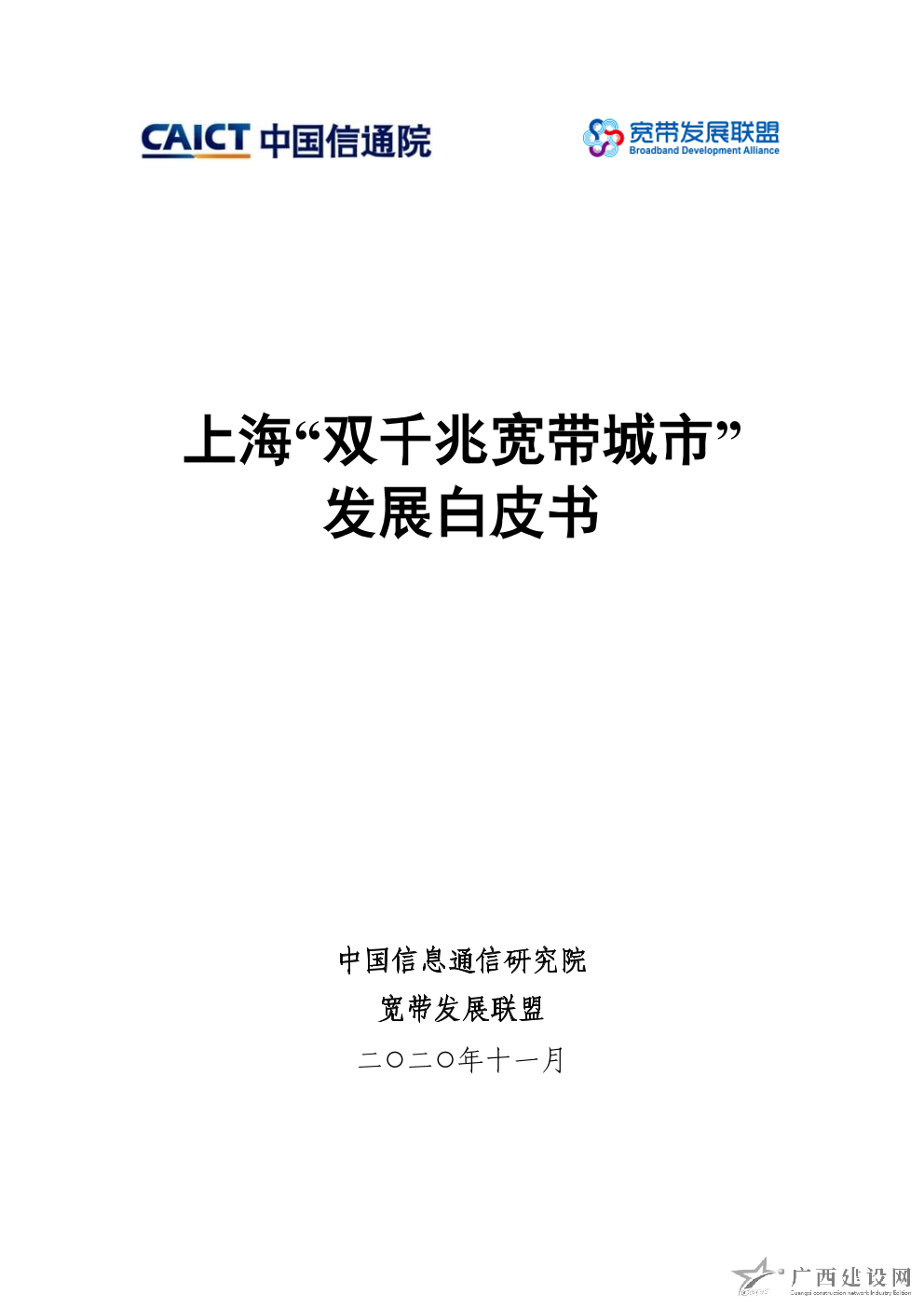 上海“雙千兆寬帶城市”發(fā)展白皮書(2020)