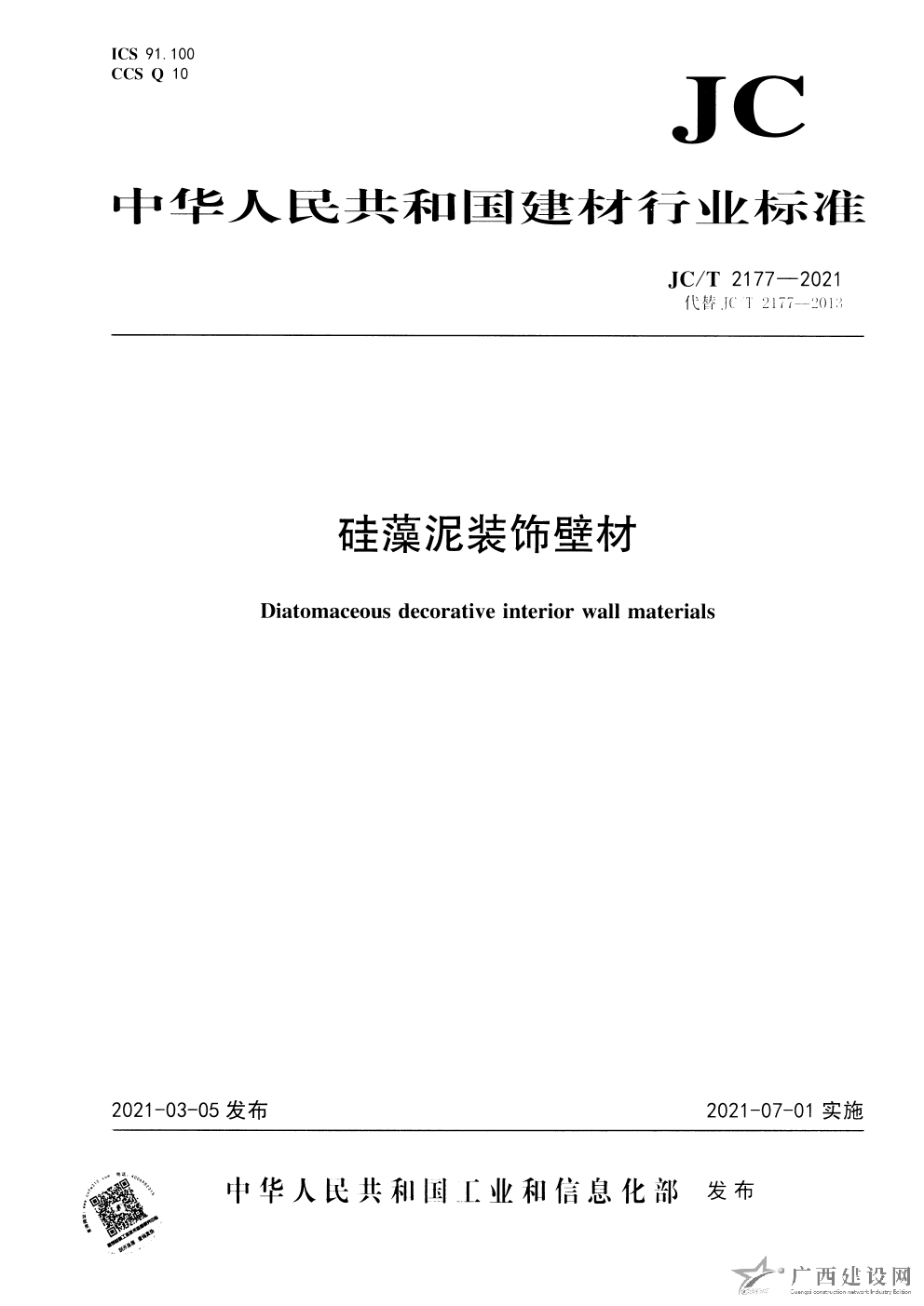 JC T 2177-2021 硅藻泥裝飾壁材