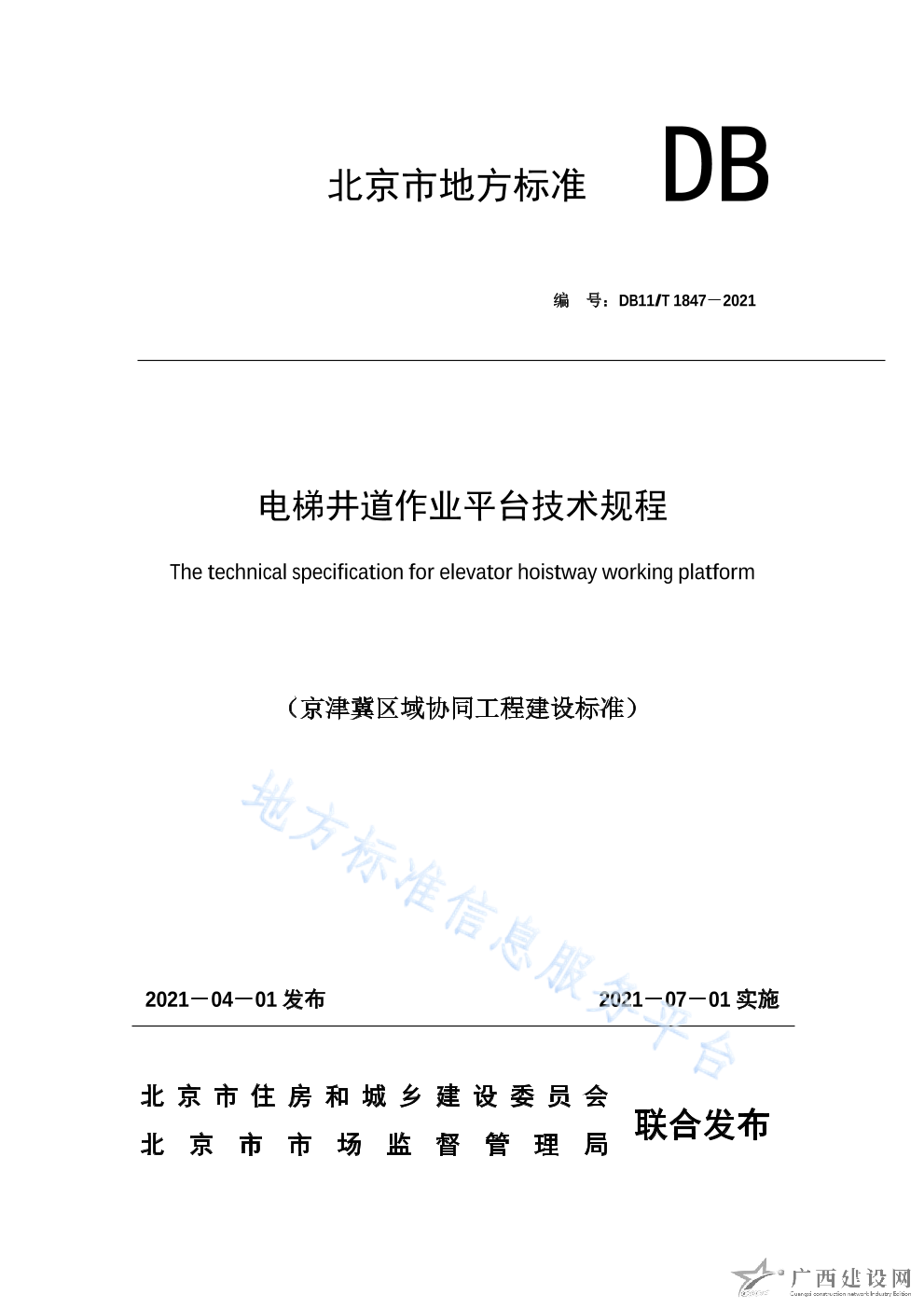 DB11 T+1847-2021電梯井道作業(yè)平臺(tái)技術(shù)規(guī)程