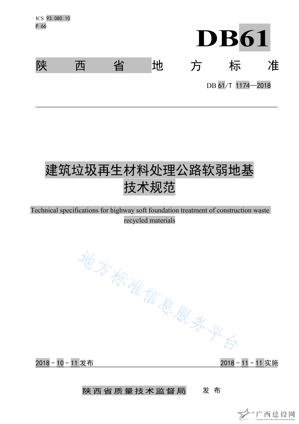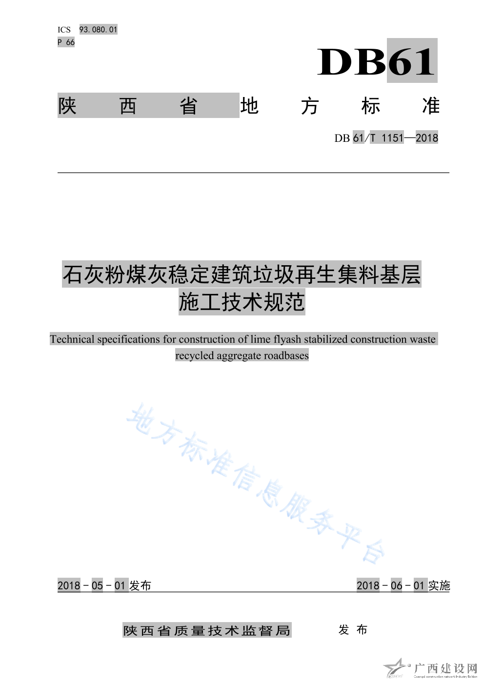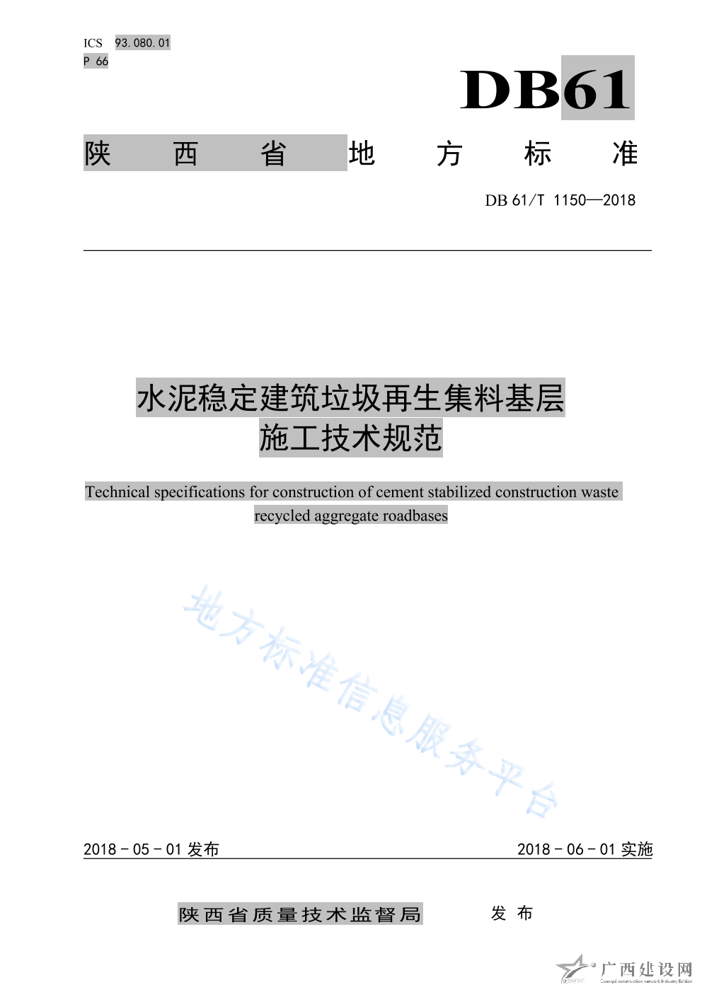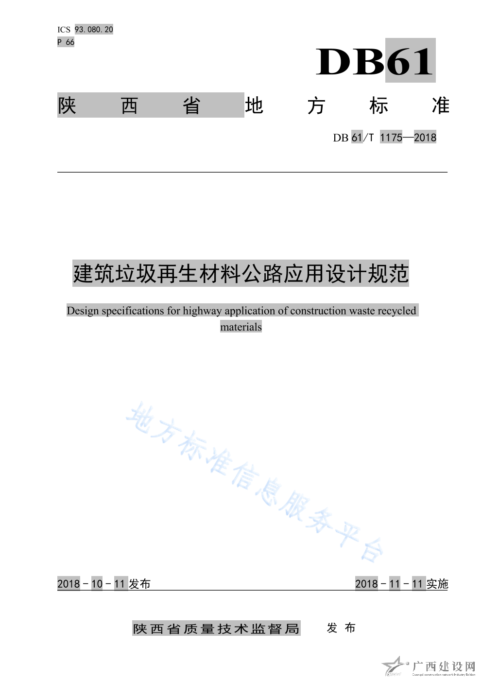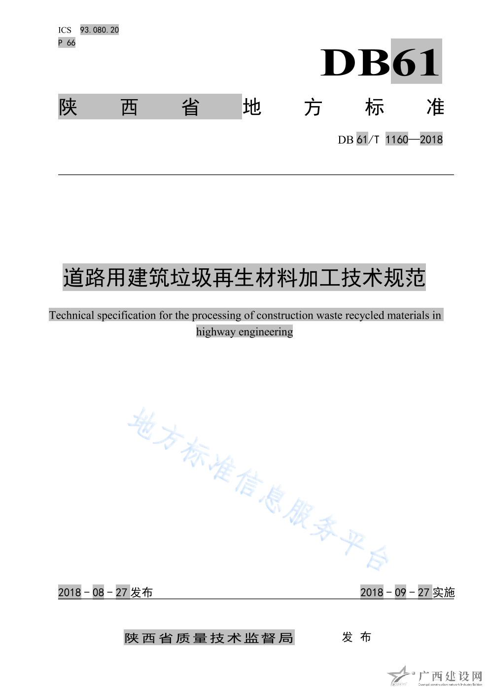 DB61 T1148-2018道路用建筑垃圾再生粗集料技術規范