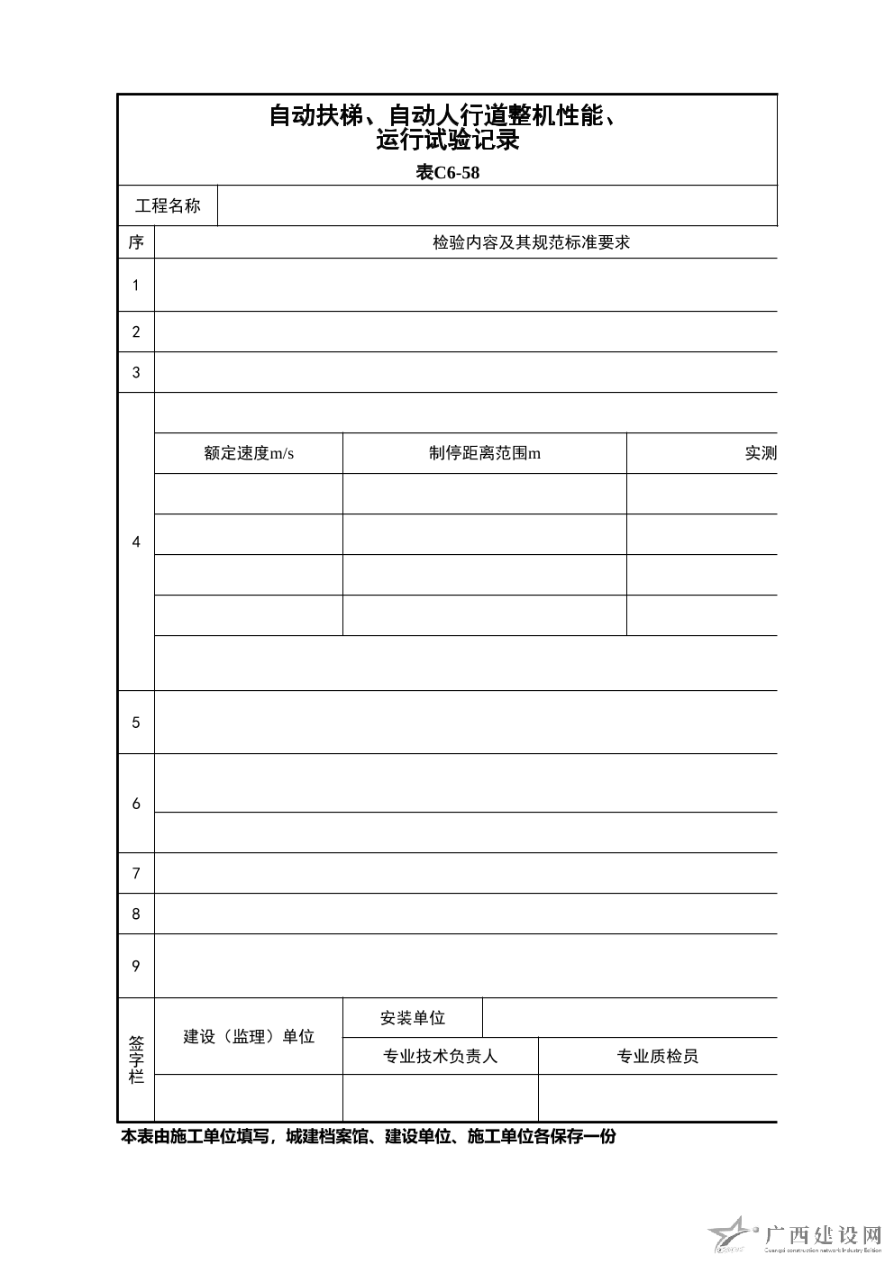 自動扶梯自動人行道安裝與土建交接預檢記錄表C5-28